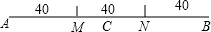 当点C落在线段MN时,C与A,B之间的距离都不小于40米