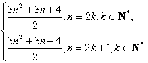 当n≥3,且n=2k+1时(k∈N*),Sn=6k2+3k+2+a2k+1=6k2+3k+2+6k-1=6k2+9k+1.