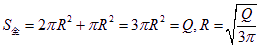 一个半球的全面积为Q,一个圆柱与此半球等底等体积,则这个圆柱的全面积是