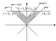 由y≤2及|x|≤y≤|x|+1围成的几何图形的面积是______________.