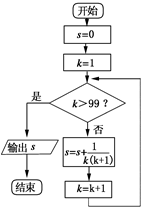 这是一个累加求和问题,共99项相加,可设计一个计数变量,一个累加变量,用循环结构实现这一算法;程序框图如下图所示.