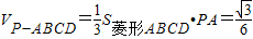 ,可由等边三角形性质及勾股定理得到PA与AB,AD均垂直,进而根据线面垂直的判定定理得到PA垂直底面,即为棱锥P-ABCD的高,代入棱锥体积公式,可得答案.