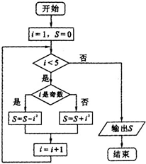 分析:分析程序中各变量、各语句的作用,再根据流程图所示的顺序,可知:该程序的作用是利用循环判断i是否为奇数求出S的值,并输出最后的S值.
