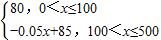 当100<x≤500时,P=80-0.05(x-100)=-0.05x+85