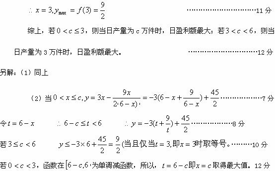 (c为常数, 且0<c<6)。已知每生产1件合格产品盈利3元,
