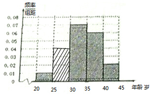 ½â´ð ½â£º£¨1£©¸ù¾ÝƵÂÊ·Ö²¼Ö±·½Í¼£¬ÄêÁäÔÚ[25£¬30£©µÄƵÂÊΪ