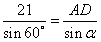 | 解:如图,令∠ACD=α,∠CDB=β, 在△CBD中,由余弦定理得 cosβ= ∴sinβ= 而sinα=sin(β-60°)=sinβcos60°-sin60°cosβ 在△ACD中, 所以AD= ∴这个人再走15千米就可到达A城。 |