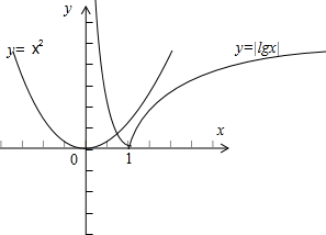 解:在同一坐标系内画出函数y=x2与y=|lgx|的图象,如图:
