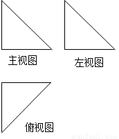 如图,某几何体的主视图、左视图、俯视图均为腰长为2cm的等腰直角三角形,则这个几何体的体积为 .
