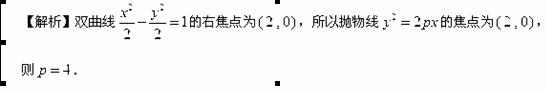 若抛物线的焦点与双曲线的右焦点重合,则的值为 .