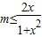 )max=1,∴m≥1.mx2-2x+m≤0等价于m(1+x2)≤2x,即