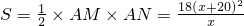 如图,互相垂直的两条公路AP、AQ旁有一矩形花园ABCD,现欲将其扩建成一个更大的三角形花园AMN,要求点M在射线AP上,点N在射线AQ上,且直线MN过点C,其中AB=36米,AD=20米.记三角形花园AMN的面积为S.