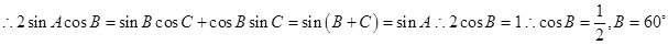 点评:解三角形要用正弦定理余弦定理实现边与角的互相转化,正弦定理:![]()