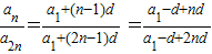 【答案】分析:先根据等差数列的通项公式计算出an=a1+(n-1)d与a2n=a1+(2n-1)d,进而表达出