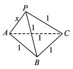 三棱锥P—ABC中,若棱PA=x,其余各棱长均为1,则x的取值范围是______________.