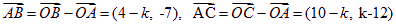 设向量,当k为 时,A、B、C三点共线。