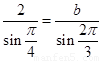 可求得角A.这样本题就是典型的已知两角及一边的解三角形问题,用正弦定理即可求得