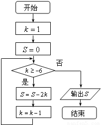 【答案】分析:分析程序中各变量、各语句的作用,再根据流程图所示的顺序,可知:该程序的作用是累加S=-2+0+2+…+10+12,并输出S值.