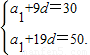 解答:解:(Ⅰ)由an=a1+(n-1)d,a10=30,a20=50,得