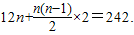 (2)把等差数列的求和公式代入Sn=242进而求得n.