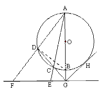 如图:AB是⊙O的直径,G是AB延长线上的一点,GCD是⊙O的割线,过点G作AG的垂线,交直线AC于点E,交直线AD于点F,过点G作⊙O的切线,切点为H.求证:(1)C、D、F、E四点共圆;