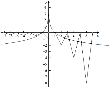 (2)当x∈[-7,0]∪(0,7)时,利用图象法判断函数y=f(x)-log${\;}_{\frac{1}{3}}$|x|的零点个数.
