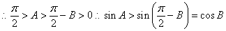 点评:比较两数大小常采用作差法与零比较,本题的关键点在于由内角的范围得到