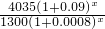 由题意,x年后总的GDP为4035(1+0.09)x亿元,x年后常住人口为1300(1+0.0008)x人,