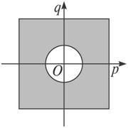 解:根据一元二次方程有实数根的充要条件找出p,q的约束条件,从而确定区域的几何度量.由已知,点(p,q)组成了边长为6的正方形,所以D=62=36.由方程x2+2px-q2+1=0两根都是实数得:Δ=(2p)2-4(-q2+1)≥0,即p2+q2≥1.所以当点(p,q)落在“正方形内且圆外”的阴影区域时,方程的两根都是正数.