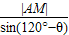 ∴|AB|=4sinθ,|AM|=4sin(120°-θ),又点M为边AC的中点,