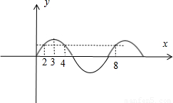 与直线y=b(0<b<A)的三个相邻交点的横坐标分别是2,4,8,