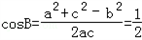 ∴a2+c2﹣b2=ac
