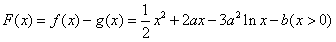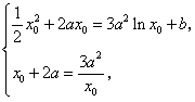 x2+2ax,g(x)=3a2lnx+b,其中a>0,设两曲线y=f(x),y=g(x)有公共点,且在该点处的切线相同。