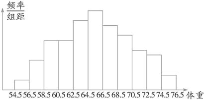为了了解某地区高三男性学生的身体发育情况,抽查了地区内100名高三男生的体重情况,结果如下(单位:kg).56.5 | 69.5 | 65 | 61.5 | 64.5 | 66.5 | 64 | 64.5 | 76 | 58.5 |