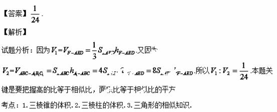 的中点,设三棱锥的体积为,三棱柱的体积为,则