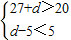 | f(x) | 递增 | 极大值27+d | 递减 | 极小值d-5 | 递增 |