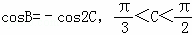 ,结论正弦定理边角互化的原则,将式子中边全部化为对应角的正弦值,然后根据两角和与差的正弦公式,倍角公式,得到sinB=sin2C,又由因为