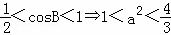 ,两边平方后,根据(1)的结论,我们可求出B的表达式及取值范围,进而求出