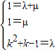 ,解得λ=0,μ=1,k2+k-1=0,
