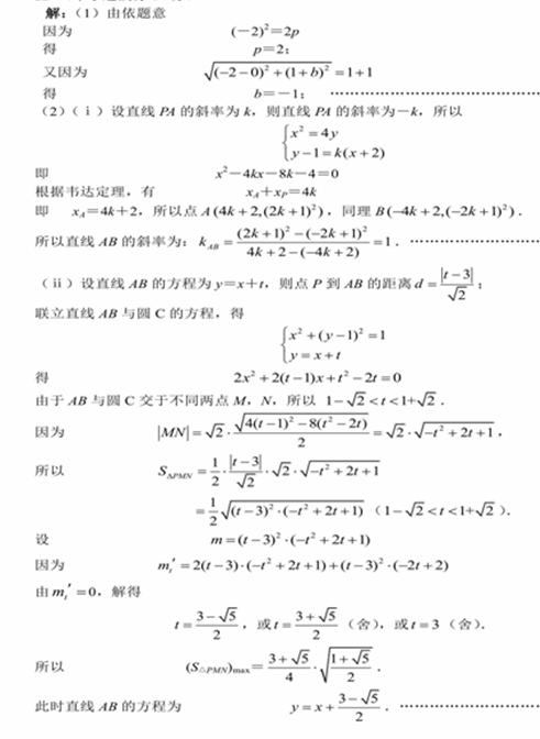 ( II)过点P作两条斜率互为相反数的直线, 分别与抛物线交于两点A,B,若直线AB