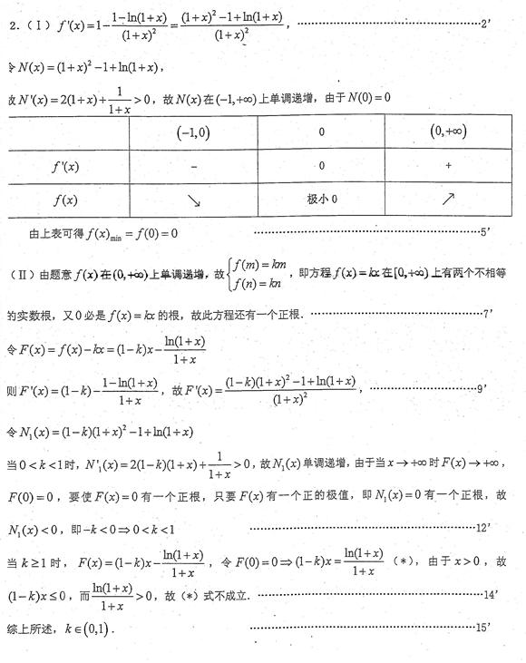 (本题满分15分)已知函数(Ⅰ) 求的最小值(Ⅱ)若在区间, 试求k的取值范围.