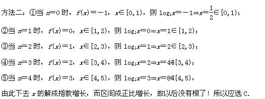 设函数f(x)=n-1,x∈[n,n+1),n∈N,则满足方程f(x)=log2x根的个数是( )