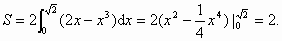 由图,知图形关于原点对称,所求面积是第一象限阴影部分的2倍. 所以 |