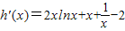 设h(x)=x2lnx+lnx-2x+2,则