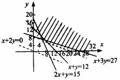 每张钢板的面积,第一种为1m2,第二种为2m2,今需要A、B、C三种规格的成品各12、15、27块,问各截这两种钢板多少张,可得所需三种规格成品,且使所用钢板面积最小?