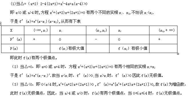 令f’(x)=0得x2+(a+2)x+(2a+1)=0.
