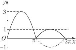 函数f(x)=sinx+2|sinx|,x∈[0,2π]的图象与直线y=k有且仅有两个不同的交点,则k的取值范围是_______________.