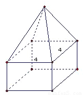 【答案】分析:由三视图可知:该几何体是由下面长、宽、高分别为4、4、2的长方体,上面为高是2、底面是边长分别为4、4的矩形的四棱锥,而组成的几何体.由此可计算出答案.