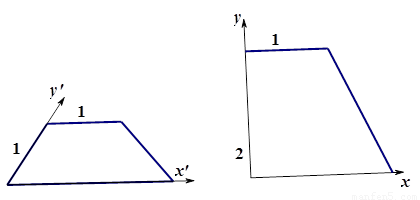 轴平行,且长度为原来的一半.可计算直观图中梯形下底长为1+