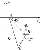 在△ABC中,AC=28t,BC=20t,AB=9,∠ABC=180°-45°-15°=120°.